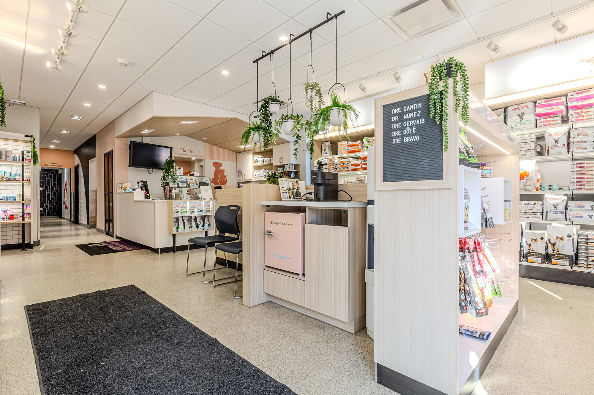 Chaque projet est conçu sur mesure afin d’optimiser les espaces cliniques, faciliter le travail des équipes vétérinaires et offrir un environnement sécuritaire, moderne et accueillant pour les animaux et leurs propriétaires.